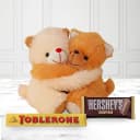 Cute Cuddling Teddy Toblerone n Hersheys Chocolate Gift Combo