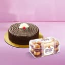 Indulge in the richness of our Decadent Chocolate Delight, crafted by the prestigious 5 Star Bakery. This exquisite 1 kg cake boasts 16 irresistible Ferrero Rocher chocolates, making it an unforgettable gift for any occasion. Perfect for birthdays, anniversaries, or just to show you care, this cake offers not only remarkable taste but also elegant presentation. Experience the moist, rich layers that melt in your mouth and create lasting memories. While this exclusive delight is available only in Chennai, we guarantee a cake of equal or greater weight from a top local bakery for other locations, along with a free Cadbury Celebration Pack. Share the joy of this luxurious treat!