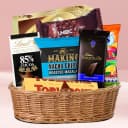 Immerse yourself in a luxurious assortment of sweets and snacks, featuring Ferrero Moments (69.6 gm), Toblerone (100 gm), and Lindt Bar (100 gm). Unibic Choco Chip Cookies (150 gm) and Foxs Chocolate Packet (90 gm) provide the perfect balance of crunch and sweetness. Additionally, enjoy the rich flavor of Bournville (80 gm) alongside crispy Cornitos Crisp (150 gm), all beautifully presented in a large basket, making it an ideal present for special occasions or a delightful treat for yourself.