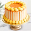 Deliver your message to your loved ones with this gift of Delicious Eggless Butter Scotch Cake and make them feel special. Product Details: - Cake Type: Eggless Butterscotch Cake - Variant: Eggless - Flavor: Butterscotch - Shape: Round - Base: Butterscotch Sponge Base - Garnishing: White cream frosting and orangish sweet gel dripping from top to sides of the cake - Decoration: Fresh Cream Flower - Weight: 1/2 Kg