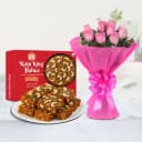 Elevate your gifting experience with the perfect blend of Mohanlals Mithaiwala Kaju King Halwa and a radiant bouquet of pink roses. This luxurious gift set includes 250 grams of heavenly, melt-in-your-mouth halwa, complemented by a collection of ten exquisite pink roses. Ideal for any occasion, from birthdays to expressions of gratitude, this unique pairing conveys warmth and affection. Available exclusively in Ahmedabad, this exquisite combination will surely leave a lasting impression on your loved ones.