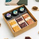Surprise your loved ones with the Delightful Mukhwas & Chocolate Indulgence Box! This thoughtfully curated gift contains three enticing mukhwas selections—Khatta Meetha Goli, Paan Gulkand, and Saunf Churi—alongside three delectable chocolate bars in Butterscotch, Coffee, and Peanut flavors. Crafted with love and care, our gift box is free from preservatives, colors, or additives, ensuring a purely delightful experience. Perfect for any occasion, this exquisite gift spreads joy and strengthens connections. Enjoy a harmonious blend of flavor and tradition in every bite!