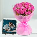 Delightful Pink Roses with a Personalized Photo Tile