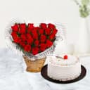 Celebrate love in the sweetest way with our 1 kg Vanilla Cake from the prestigious 5 Star Bakery, beautifully paired with an enchanting heart-shaped arrangement of 24 vibrant red roses. This exquisite gift set is ideal for marking those cherished moments and creating lasting memories with loved ones. The cake promises indulgence while the roses add a classic elegance, making this a memorable present. Exclusively available for delivery in Chennai, we guarantee a cake of equal or higher quality for other cities along with a complimentary Cadbury Celebration Pack (126 gm) for added sweetness!