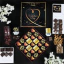 This Valentine gift hamper includes: - 25 pcs Assorted Flavour Chocolates (Roasted DryFruits, Cranberry Filling, Paan Filling, Butterscotch Filling, Mix Fruits Filling, Chocochip Filling) - Valentines Day Theme Digital Print on Box N on Chocolates Ignite the flame of romance this Valentines Day with our Divine 25 Assorted Valentines Chocolates Box. Treat your Valentine to a box of 25 divine chocolates, each offering a unique and irresistible flavour. From roasted dry fruits to cranberry filling, paan filling to butterscotch filling, mix fruits filling to chocochip filling, this assortment is a celebration of taste. The chocolates are adorned with a Valentines Day theme digital print, enhancing the romantic ambiance. Indulge in this delectable gift and let the sweetness of love fill the air.