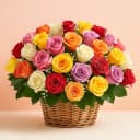 This arrangement is made of: - 24 Mixed Coloured Roses - A Basket Create wonders in the life of the people you love by sending this Divine Basket of 2 Dozen Mixed Coloured Roses and make them your fan.