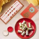 Celebrate the spirit of Raksha Bandhan with our exquisite Rakhi and Kaju delight duo. Featuring three intricately crafted Rudraksha Rakhis, each representing a bond of love, this combo is perfect for your cherished siblings. Complementing the Rakhis is a delectable 250-gram Kaju Roll, a treat that blends tradition and taste. We also provide Roli, Tilak, and Chawal to enhance your celebrations, along with a complimentary message card for your personal touch. Gift this beautiful set and create unforgettable memories.