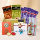 Celebrate the bond of love this Raksha Bandhan with our Divine Rakhi Celebration Basket! This stunning collection features beautifully designed Rakhis that symbolize your cherished relationships. Packed with gourmet chocolates like Cadbury Temptation Almond and Rum & Raisins, each item radiates warmth and affection. Ideal for your Bhaiya, Bhabhi, and their little ones, this basket takes joy and tradition to new heights. Complete with Roli, Tilak, and Chawal, it’s a gift that embodies love and togetherness.