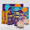 This Diwali Gift Box has: - 2 Box Of Cadbury Celebrations Assorted Chocolates Box- 130.9 gms - 4 Pcs Cadbury Dairy Milk Chocolate - 13.2 gms each - 2 Pcs Cadbury 5 Star Chocolate -24 gms each - 1 Pc Cadbury Gems Chocolate Pouch- 17.4 gms - 2 Pcs Designer Handmade Clay Diyas Show your intense love by sending this Diwali Decadence Delights to the dearest people in your life and make them feel special on Deepavali.