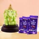 This Diwali Gift Box has: - Designer Glowing Ganesh Idol - 4 Pcs Cadbury Dairy Milk Chocolate -13.2 gms each Celebrate the essence of Diwali with this beautiful gift box. The centerpiece is a stunning Ganesh idol that symbolizes prosperity and good fortune. Accompanied by a delightful assortment of Cadbury chocolates, its a truly irresistible combination that will make your Diwali celebrations even more special.