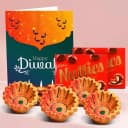 This Diwali Gift Box has: - 2 Pcs Cadbury Nutties Chocolate - 30 gms each - 4 Pcs Designer Clay Diyas - Happy Diwali Greetings Card Unlock the Magic of Diwali with this Gift Box! Relish the Decadent Cadbury Nutties, Embrace the Festive Spirit with Exquisite Designer Clay Diyas, and Express Your Love and Good Wishes through a Delightful Greetings Card.