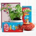 The Diwali Hamper consists of: - Diya - Syngonium Plant with Pot - 2 pcs KitKat Dessert Delight Chocolate Bar 50g each - A Free Message Card Celebrate the festival of lights in style with the Diwali Hamper: Light And Treats! This beautifully curated gift set is the perfect way to spread joy and happiness among your loved ones. The highlight of this hamper is the elegant Diya, a symbol of positivity and enlightenment. Light up your home and heart with its warm glow. Adding a touch of nature to the festivities is the Syngonium Plant with Pot. This easy-care plant is not only a beautiful addition to any space but also symbolizes growth and prosperity, making it a perfect Diwali gift. Indulge your taste buds with the two delectable KitKat Dessert Delight Chocolate Bars. Made with luscious chocolate and filled with a smooth dessert-flavored center, these bars are sure to delight anyone with a sweet tooth. To make this gift even more special, we have included a Free Message Card where you can write a heartfelt note for the recipient. Share your warm wishes and blessings as you celebrate the festival of lights together. The Diwali Hamper: Light And Treats Hamper is not only a thoughtful gift but also a beautiful gesture that brings people closer during this festive season. Order now and bring joy to the ones you cherish!