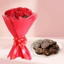 Shop Online for Dry Fruit Dates Roll (250 g) from Shree Mithai with 12 pcs Red Carnation Tissue Wrapped Bouquet N send it to your family N friends. (Only Available at Chennai)