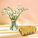 Buy Online to Send Dry Fruit Honey Dew (250 gm) from Adyar Ananda Bhawan with Rajnigandha Stems in a glass vase for your known N loved people. (Only Available at Chennai)