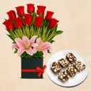 Dry Fruits Barfi from Mithas Delicious Sweets with Designer Flower Arrangement