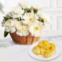 This exquisite gift set combines a stunning floral arrangement of 6 white lilies and 6 white roses, symbolizing purity and romance, with a mouthwatering selection of 10 flavorful paneer sandwiches. Ideal for any joyous occasion, from anniversaries to housewarming events, this delightful duo will surely impress your loved ones while elevating any gathering. Share the beauty of nature and the joy of great food with this remarkable offering.