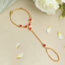 Embrace elegance with this exquisite gold and blush pink hand floral. Meticulously designed with delicate gold chains and soft pink stones, this piece ensures comfort while making a fashionable statement. Ideal for weddings, festivals, or any special occasion, it gracefully enhances your attire, helping you cherish unforgettable moments.