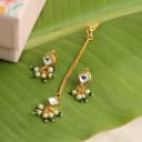 Transform your jewelry collection with our Elegant Kundan and Pearl Drop Earring Set, featuring an intricately designed Maang Tikka that complements the exquisite drop earrings, perfect for any traditional occasion.