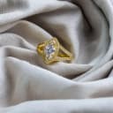This exquisite marquise jewel showcases a beautifully crafted marquise-shaped band encrusted with dazzling round cubic zirconia stones. The centerpiece features a prominent round cubic zirconia, making it a timeless accessory for those who appreciate sophistication.