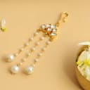 Elevate your hairstyle with the Elegant Pearl Adorned Hair Clip, showcasing a delicate floral design embellished with shimmering pearls. This accessory adds a touch of timeless elegance inspired by classic Indian designs.