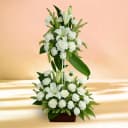 Embrace the tranquility of nature with our Elegant White Floral Harmony arrangement. This stunning bouquet, featuring a blend of 18 pristine white roses and 18 soft white carnations, complemented by 2 stems of delicate white lilies, creates a serene ambiance. Standing 37 inches tall, it’s perfect as a centerpiece for any celebration or a thoughtful gesture to lift someone’s spirits. Each bloom radiates purity and grace, making it a memorable gift for any occasion.