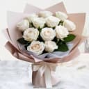 This bouquet is made of: - 10 White Roses Send across a gift straight from your heart in the form of this Bunch of 10 White Roses decked with Filler Foliage and tied with a tissue that will make your loved ones extremely happy.