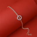 Embodying the essence of continuous love, this exquisite bracelet features a smooth, circular motif that symbolizes eternal connection. The centerpiece is embellished with delicately placed round stones, offering a gentle shimmer that effortlessly draws attention. Crafted in a modern silver hue, it transitions seamlessly between everyday ensembles and special occasions. Its double-chain design enhances durability while providing a snug fit. Lightweight and adjustable for utmost comfort, it’s ideal for all-day wear. Wear it solo for a chic statement or stack it with other accessories for a contemporary look. This bracelet makes for a heartfelt gift that signifies everlasting bonds.