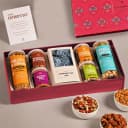 This gift hamper contains: - Khatta Meetha (120g) - Roasted Almonds (80g) - Oats N Moong (75g) - Roasted Cashews (75g) - Millets N Chana (55g) - Nutty Mix with Dry Fruits (50g) - Premium Satin Pocket Square Box - A Happy Fathers Day Greetings Card Celebrate Fathers Day in style with the Exclusive Fathers Day Treats Gift Hamper from Omay Foods. This exquisite gift is a true treat for the senses, featuring a selection of the finest healthy snacks expertly roasted using Rajasthans traditional oil-free roasting process. Each snack, from the tangy Khatta Meetha to the crunchy Roasted Cashews, is seasoned with homemade masala for a burst of natural flavors. Showcasing love and care, this gift set also includes a luxurious satin Pocket Square, adding a touch of elegance to Dads wardrobe. Perfect for pampering Dad on his special day, this gift set is a thoughtful way to express gratitude and appreciation. Treat Dad to a delightful selection of snacks and a stylish accessory with this special gift set from Omay Foods.