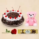Immerse your dear ones in the ocean of flavors by sending them this Exotic 4 pcs Ferrero Rocher with Black Forest, Teddy N Red Rose and spice up their lives. (Cake Weight 1 Kg)