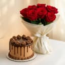This gift combo has: - 10 Red Roses Bouquet - Chocolate Cake (1 Lb) A classic gift, this exotic 10 Red Rose Bouquet and Chocolate Cake of (1 Lb) makes any Birthday celebration much grander.