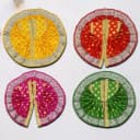 Elevate your Laddu Gopal's charm with this exquisite 4-piece attire set. Each dress is lovingly handmade from soft cotton, ensuring a snug fit without compromising on comfort. The vivid colors of red, yellow, orange, and green embody festivity and joy, making this set perfect for any celebration. Sized at 13X13 cm, your divine companion will radiate grace and warmth. Show your affection and devotion with this stunning ensemble that's ideal for any occasion.