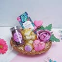 Indulge in a luxurious treat with our Exquisite Chocolate & Cranberry Gift Basket, a delightful assortment that is sure to captivate your taste buds. This exquisite collection features a 70% dark Belgian chocolate bar with roasted almonds, perfect for those who appreciate rich and intense flavors. The heart-shaped chocolate lollipop and hot chocolate piñata add a touch of whimsical charm to the ensemble, making it a truly memorable gift. Dive into the decadent world of almond florentines and assorted chocolates that promise a medley of textures and tastes. To top it off, savor the unique fusion of flavors with our masala cranberry bottle, offering a delightful twist to traditional cranberry treats. Whether youre treating yourself or surprising a loved one, this gift basket is a perfect choice for any occasion, guaranteed to bring joy and delight to all who receive it. The basket consists of: - 70% dark belgian chocolate with roasted almond bar (40 gms) - 1 heart shape chocolate lollipop - 1 heart shape hot chocolate piñata - 2 almond florentines - 6 assorted chocolates - 1 bottle masala cranberry (120gms)
