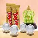 This Diwali Gift Hamper Has: - Designer Glowing Ganesh Idol - Twix Chocolate - 2 Pcs - Designer Crystal Led Light - Set of 4 Step into a world of magic and wonder with this exquisite Diwali gift set. The highlight of this set is a beautifully crafted glowing Ganesh idol that radiates positivity and blessings. Complementing the idol are four designer crystal LED lights that will create an enchanting ambiance in your home. This gift set is a perfect way to immerse yourself in the joy and enchantment of Diwali.