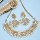 This is a gift of: - A Kundan Choker - A Pair of Kundan Earrings - A Kundan Maang Tika Step into the spotlight with the Exquisite Kundan Statement Trio. This dazzling set includes an eye-catching Kundan choker, elegant earrings, and a refined maang tika. Each piece is meticulously crafted, showcasing the beauty of Kundan stones. The choker stands out with its intricate design and radiant sparkle. The earrings pair seamlessly, adding elegance and charm. The maang tika infuses a hint of classic tradition, perfect for any festive or special occasion. To maintain their sparkle, store separately and avoid water and harsh chemicals. This trio is more than just a jewelry set; it’s a perfect gift of timeless beauty and sophisticated charm.