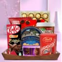 Delight your loved ones with the Exquisite Treats Delight Basket, a charming collection of gourmet delicacies designed to bring joy to any occasion. Packed with mouthwatering items, this basket includes 4700BC Popcorn, Wingreen Chocolate Cake Mix, Cadbury Nutties Chocolate Box (30g), Lindt Lindor Chocolate Box (200g), Royal Dansk Cookies (340 gms), Cadbury Dairy Milk Silk Chocolate Bar (60g), Nestle Kitkat Desert Brownie Chocolate Bar (50g), and a 24pcs Ferrero Rocher Chocolate Box. Comes beautifully arranged in a reusable wooden tray, it’s a perfect gift for birthdays, anniversaries, or festive celebrations.