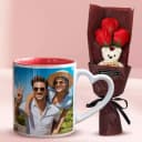 Convey all your sweet wishes through this gift of Fabulous Artificial Roses with Teddy Bouquet N Personalized Coffee Mug Combo and show your fondness towards the recipient on this Valentines Day. This gift has: a) Artificial Red Roses with Teddy Bouquet b) Personalized Heart Handle Coffee Mug Details needed: Send a digital photo with your Alpha-numeric order id at: designphotocake@gmail.com or Whatsapp at +91 9230721098.