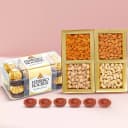 Wishes are delivered in the most stunning way by gifting this Festive Feel Choco n Dry Fruits Hamper for lovely people in a lovely way. This Deepavali Gift combo comprises of 16pc Ferrero Rocher Chocolate Box with Assorted Dry Fruits (500g) and Free 6 pcs Diya.