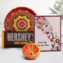 The Diwali Hamper consists of: - Diya - A Hersheys Whole Almonds Chocolate Pack - A Round Shape Designer Thali - A Free Message Card is also Included Celebrate the festival of lights in opulent style with our Festive Greetings: Diya, Chocolates N Card Hamper. This thoughtfully curated gift set is sure to spread joy and happiness among your loved ones. The highlight of this hamper is the meticulously adorned Diya, exuding a warm glow that symbolizes the triumph of light over darkness. It instantly sets the mood for a festive ambiance. Indulge your taste buds with the delectable Hersheys Whole Almonds Chocolate Pack, packed with rich and smooth almond-infused chocolates. Each bite is a melt-in-your-mouth experience, perfect for sweetening the celebrations. Complete with a sophisticated Round Shape Designer Thali, this hamper adds an elegant touch to the festive rituals. It doubles as a decorative piece that can be cherished for years to come. To add a personal touch, we have included a free message card with every Diwali Hamper. Express your heartfelt wishes, words of love, or greetings of prosperity to make this gift even more special. Whether its for family, friends, or colleagues, our Festive Greetings: Diya, Chocolates N Card Hamper is an ideal choice to spread the festive cheer. It captures the essence of Diwali and promises to create memories that will shine bright forever.
