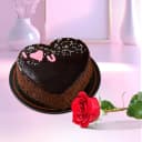 Fascinate your dear ones on Valentines Day with this Finest Chocolate Mud Love Cake (2.2 lb) N Single Red Rose Combo to incorporate in their hearts, the eternal beauty of the feeling called love.