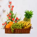 Fresh Fruits Basket with Pink Roses