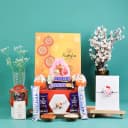 Embark on a sweet adventure with our Galaxy Adventure Kids Rakhi Gift Set! Featuring two incredible Kids Rakhis—a Rocket Rakhi and a Spinner Rakhi—this box is packed with goodies like Bounty Coconut Bars, Cadbury Dairy Milk minis, and Snickers treats. Surprise your little ones with delightful Kinder Joys and charming pink heart-shaped homemade chocolates, all presented in a colorful reusable gift box.
