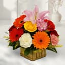 Experience the exquisite charm of the Garden Treasures Gift Basket, a vibrant assembly of blooms that encapsulates the essence of nature's beauty. This delightful arrangement is designed to evoke joy at any occasion, as it bursts with a harmonious blend of colors and fragrances. Each flower, from the cheerful yellow gerberas to the classic red roses, is selected to create a striking centerpiece that radiates warmth. Whether it's a birthday, an anniversary, or simply a gesture of love, this gift basket promises to brighten the day and create lasting memories. Treat yourself or someone special to this enchanting bouquet that signifies love and celebration.