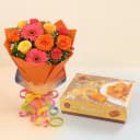 Deliver Ghee Mysorepak (500 gm) from Dadus with 12 pcs Seasonal Flower Bouquet to surprise on special occasion. (Only Available at Hyderabad)