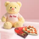 Make a love statement on Valentines Day with this gift of Glamorous For You Teddy n Handmade Heart Chocolates Gift which is filled with your good wishes. This Gift Combo is well presented with For You Teddy (40cm) and 11 pc Heart Shape Handmade Chocolates.