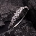 <pEmbrace the allure of classic beauty with this exceptional Silver Plated Bracelet, featuring five brilliant teardrop stones that gracefully ascend in size. Each gem is surrounded by a refined halo of shimmering pavé-set stones, while the band showcases twin rows of radiant accents that add a touch of opulence. This exquisite piece is perfect for any occasion and enhances the charm of your jewelry collection.