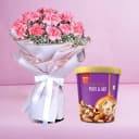 Glorious Pink Carnation Bouquet with Kwality Walls Fruit n Nut Ice Cream