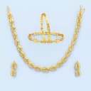 This gift box contains: - Gold Plated AD Necklace - A Pair of Matching Earrings - Bangles Elevate your style with our Gorgeous AD Jewellery Set, a stunning ensemble that exudes elegance and sophistication. This exquisite set features a beautifully crafted gold-plated AD necklace that sparkles with crystal accents, perfectly complemented by a pair of matching earrings that add a touch of glamour to any outfit. Complete the look with the shimmering bangles that add a subtle yet striking finish to your ensemble. Perfect for special occasions or adding a touch of luxury to your everyday attire, this jewelry set is sure to turn heads and make you feel like a true fashion icon. Whether youre treating yourself or looking for the perfect gift for a loved one, the Luxe Crystal Jewelry Set is a timeless choice that will never go out of style.