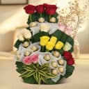 Send your affectionate wish through this gift of Gorgeous Bouquet of 24 Assorted Roses n 16pc Ferrero Rocher Chocolate and surprise the people you love the most.
