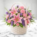 Buy this Basket of star shaped fresh 4 Asiatic Pink Lilies N 8 Pink Carnations Arrangement with Fillers, and present it to the ones you cherish most in your life to inform them that you care.