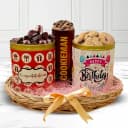 Surprise your loved ones with our Gourmet Delight set, featuring a delectable assortment of Cookies, Jellies, and Chocolates. This exquisite collection includes a 200g tin of artisanal chocolates, a 200g tin of assorted handmade jellies and candies, and a delightful 100g tin of Cookie Mans Chocochip Cookies, all elegantly packed in a lovely cane basket. A sweet way to celebrate any special occasion!